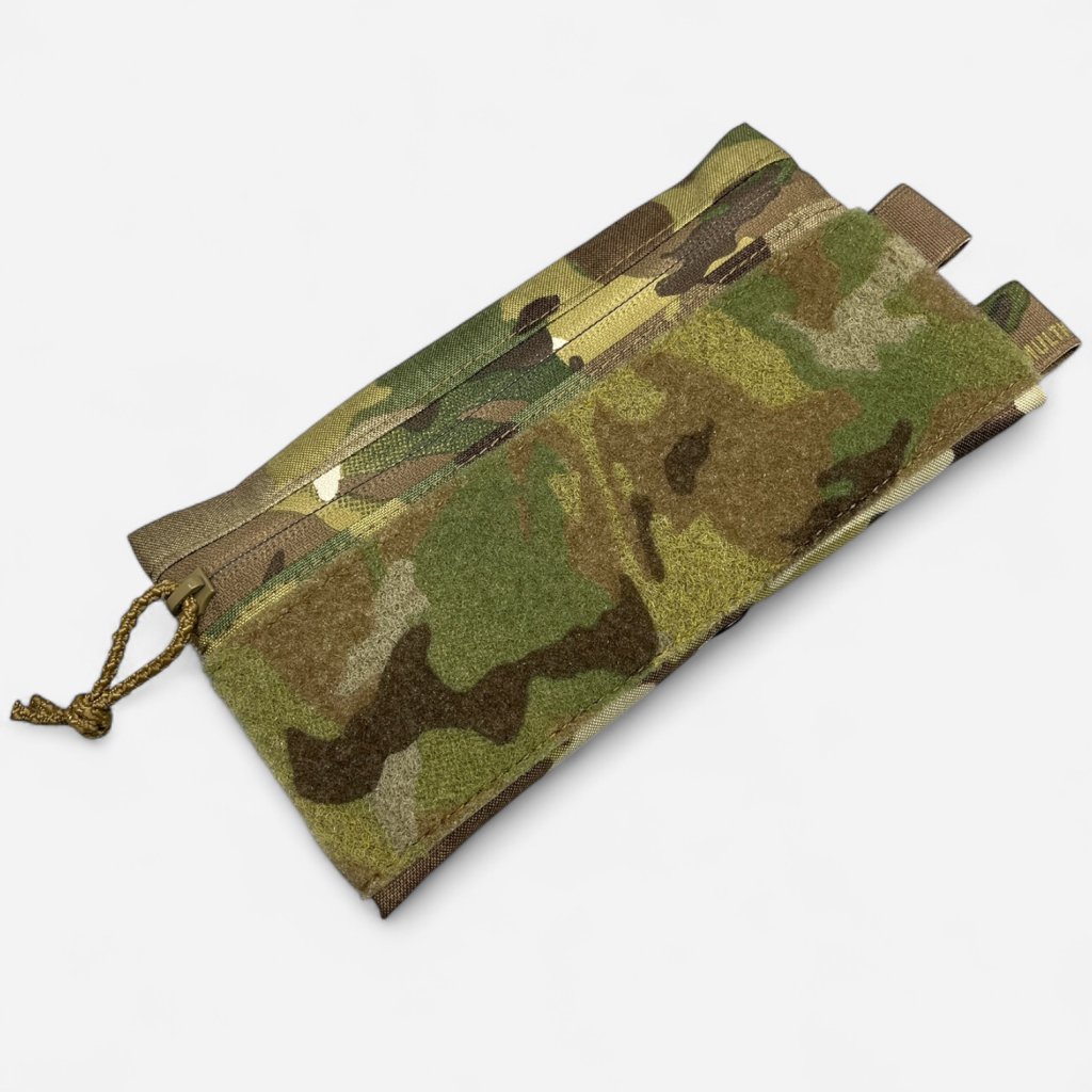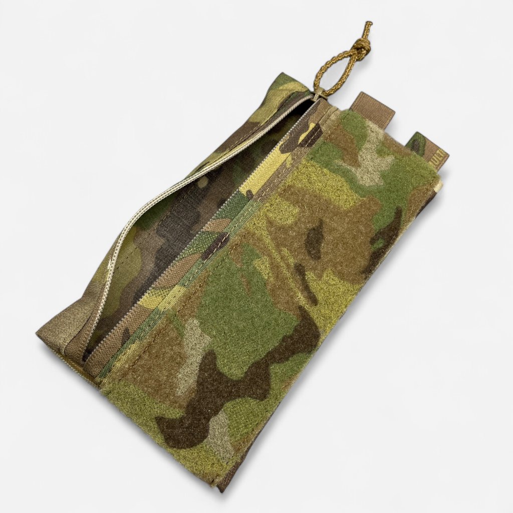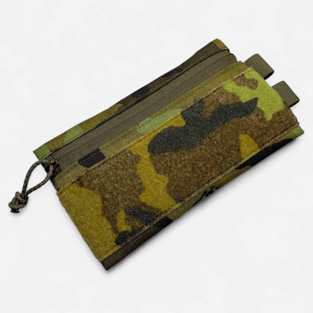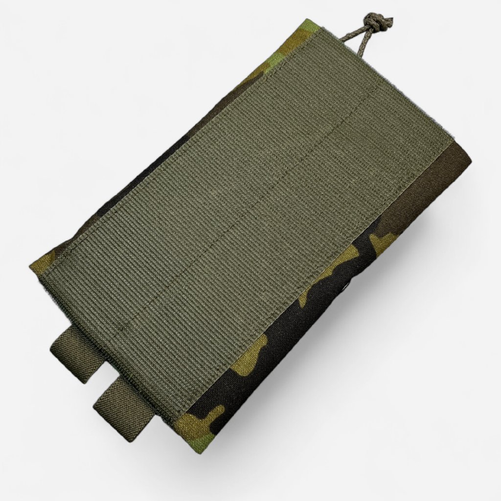 Přední velcro kapsa slouží jako doplňkové pouzdro na Hrudní taktický systém, ve spodní části odtoková průchodka. Na vnější časti pruženková poutka. Díky háčkové časti na zadní straně můžete pouzdro kdykoliv odlepit.