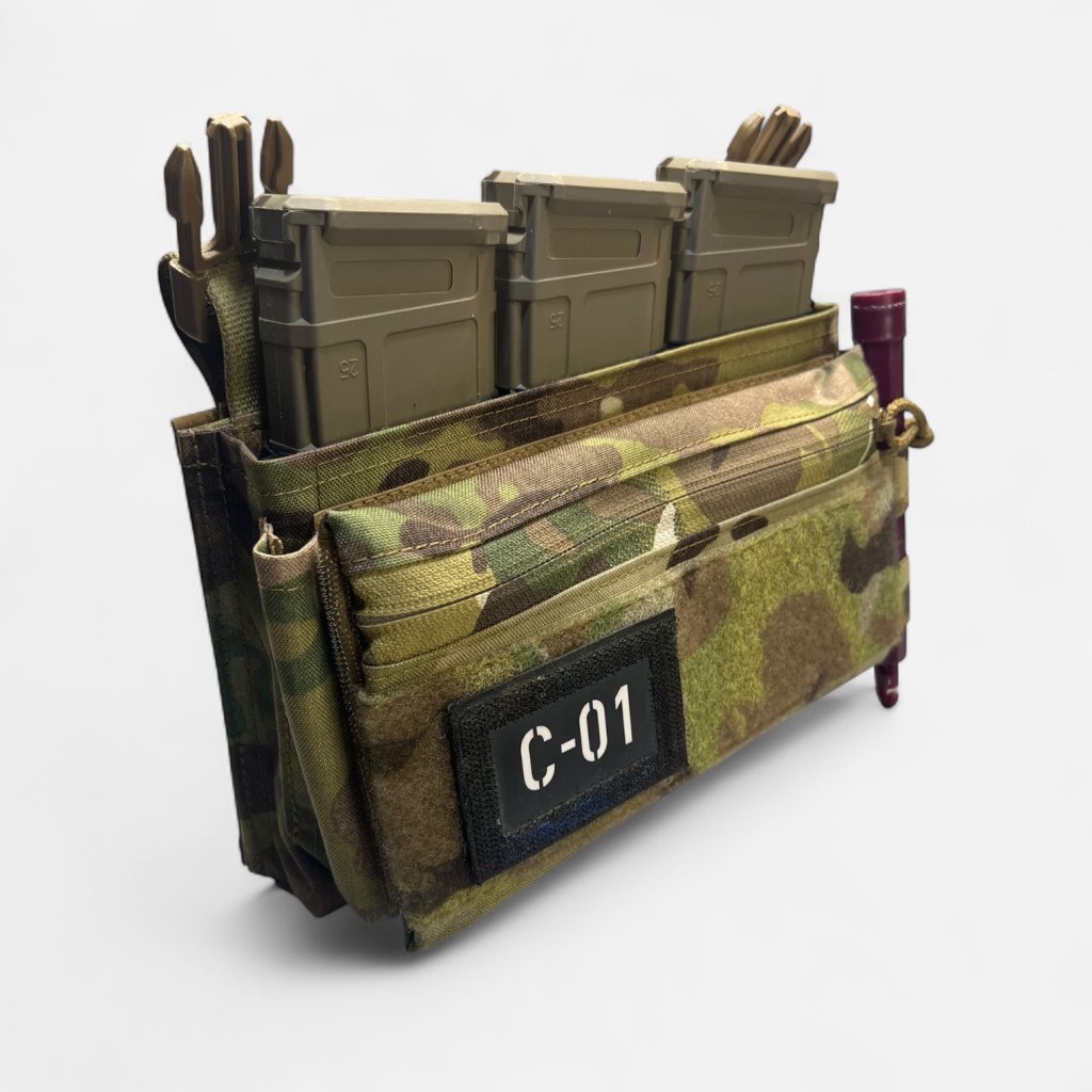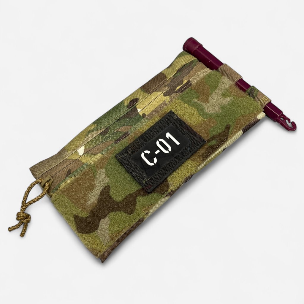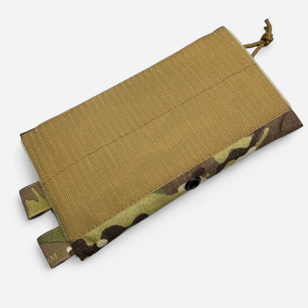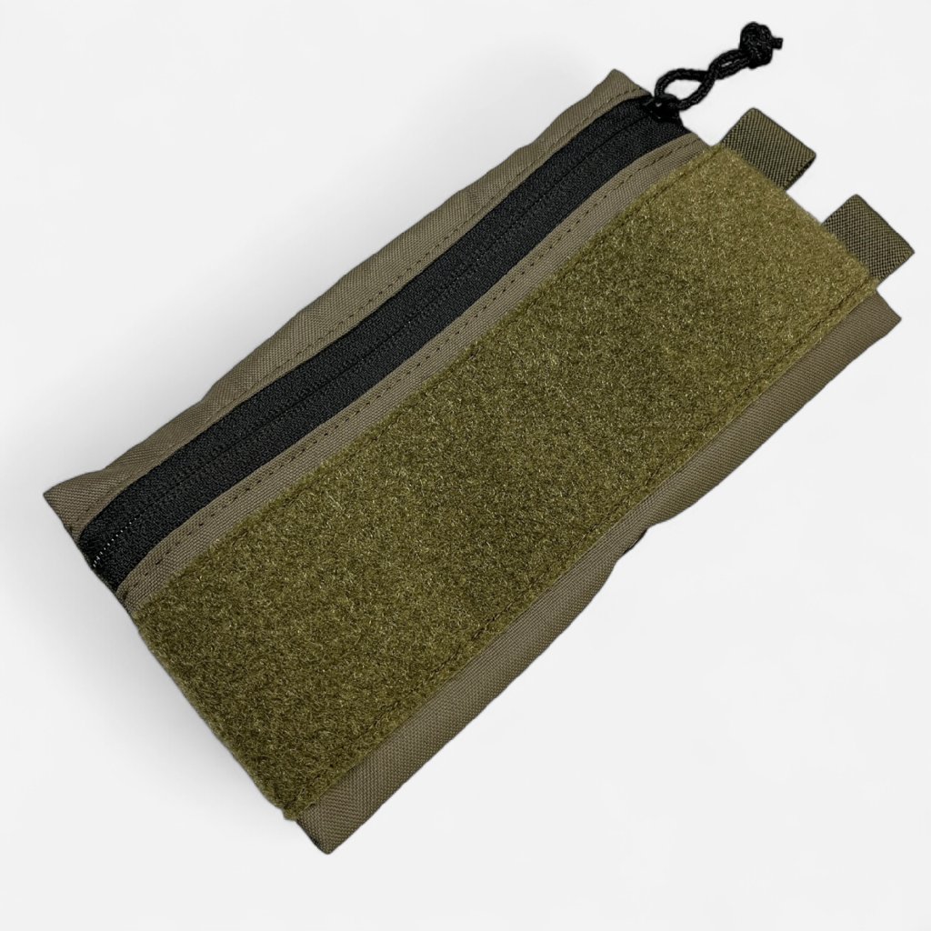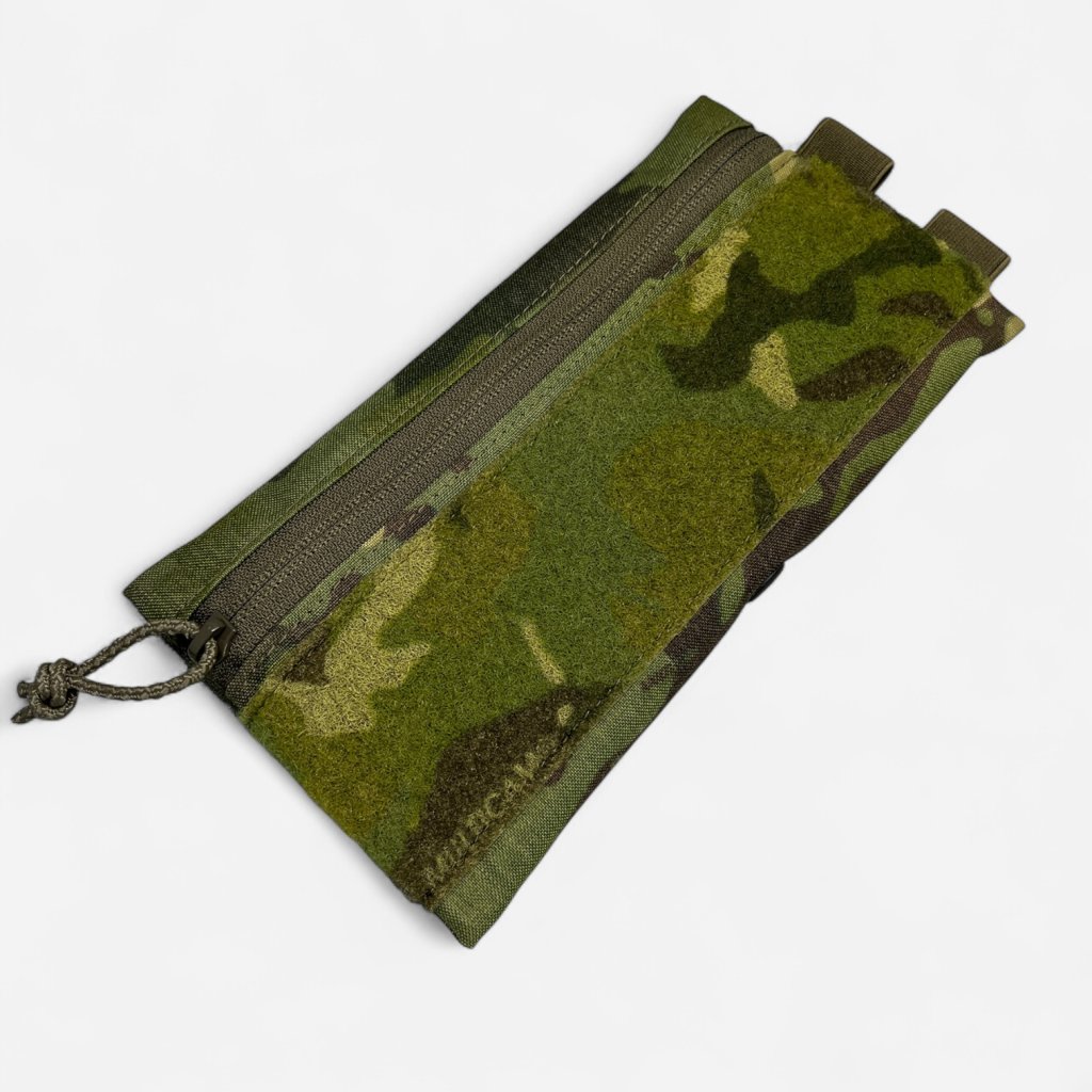 Přední velcro kapsa slouží jako doplňkové pouzdro na Hrudní taktický systém, ve spodní části odtoková průchodka. Na vnější časti pruženková poutka. Díky háčkové časti na zadní straně můžete pouzdro kdykoliv odlepit.