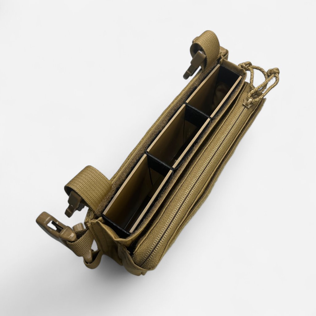 Lze jej vložit i do jakékoliv vnitřní kapsy balistického nosiče, která je opatřená suchým zipem. Insert, je navržený aby dokonale fixoval vaše zásobníky, snadno se vkládal a vytahoval.