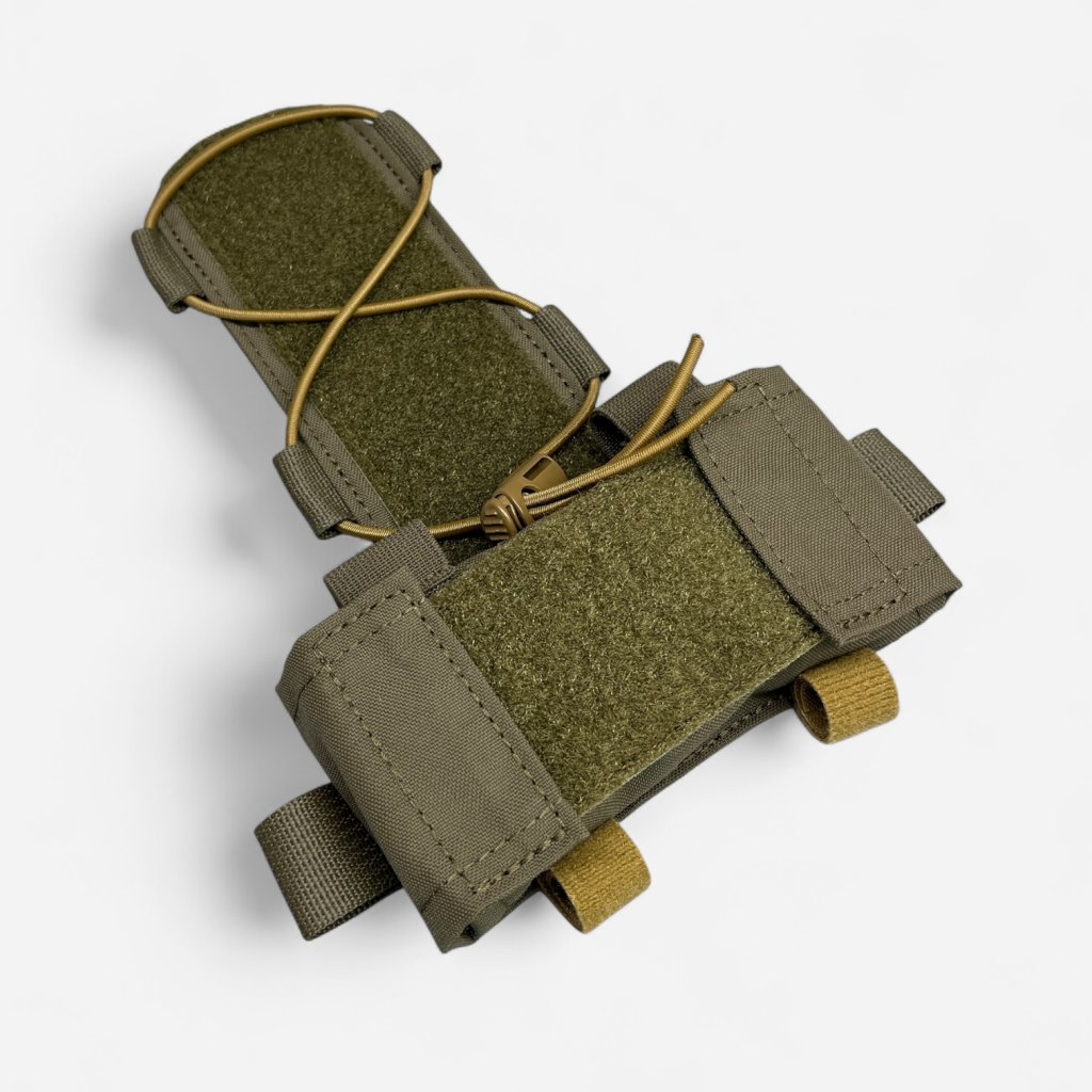 Hlavní chlopeň má z obou stran suchý zip (háček dole/smyčka nahoře) a nastavitelné bungee, které slouží k fixaci různých doplňků přilby ( IR světlo na helmu apod.) Horní část hlavní kapsy má dvě pruženky (pro další baterie) a spodní nastavitelné velcro one wrap pro případné vedení kabeláže apod.